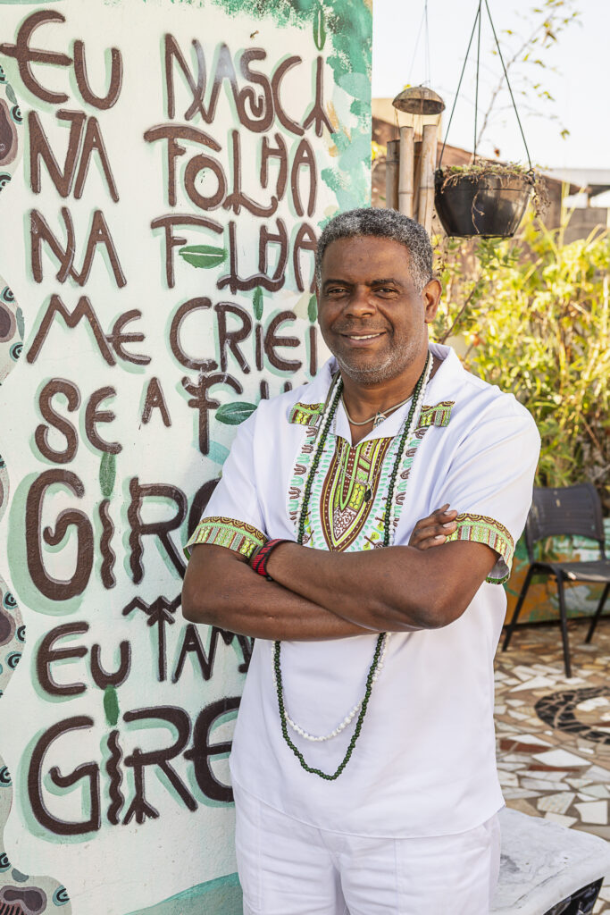 Pai Ricardo de Moura coordena a Associação de Resistência Cultural Afro-brasileira Casa de Caridade Pai Jacob do Oriente (CCPJO), terreiro que atua há cerca de 80 anos no Buraco Quente, região da Pedreira Prado Lopes em Belo Horizonte – uma das mais tradicionais comunidades afroperiféricas da cidade. É herdeiro dos conhecimentos da matriz Angola-Bantu, transmitidos por seus pais, e exerce também o cargo de Rei Congo da Guarda de São Jorge de Nossa Senhora do Rosário, no Bairro Concórdia (BH). Desde 2016, é professor convidado da Formação Transversal em Saberes Tradicionais da UFMG, onde compartilha os fundamentos dos terreiros com estudantes e professores em um espaço de diálogo entre regimes de conhecimento. Também atua como consultor, palestrante e orientador em políticas públicas voltadas à cultura, religiosidade e direitos dos povos de terreiro. É co-líder do grupo de pesquisa inscrito no diretório do CNPQ “Matuta: comunidade de pesquisa em terreiro”. É autor do livro da “Da Macega à Makaia: tramas de relação do falar negro de terreiro” (2025) desenvolvido junto ao Programa Rumos Itaú Cultural.