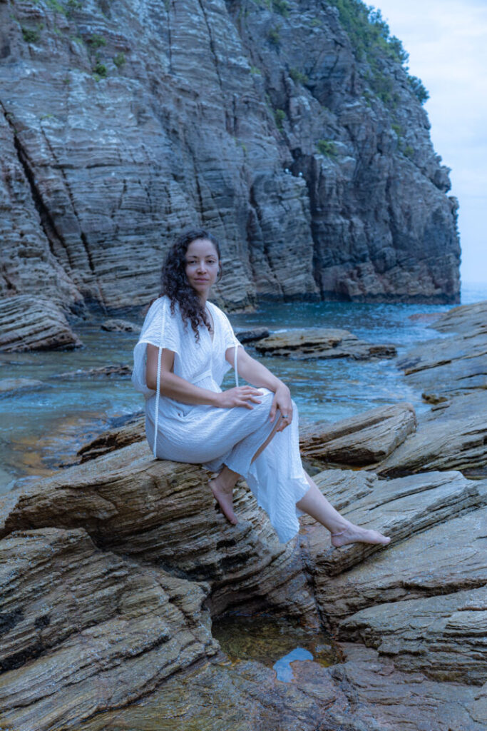 Utilizando a natureza bruta de uma praia paradisíaca como cenário, o videoclipe de “Depressa” aposta em uma estética cinematográfica para narrar uma poderosa metáfora de transmutação. Fugindo do óbvio, pøliva personifica o elemento Éter para encenar a “morte do ego”: uma performance visceral onde a artista se liberta de amarras que simbolizam a matrix mental para revelar a consciência do Ser.