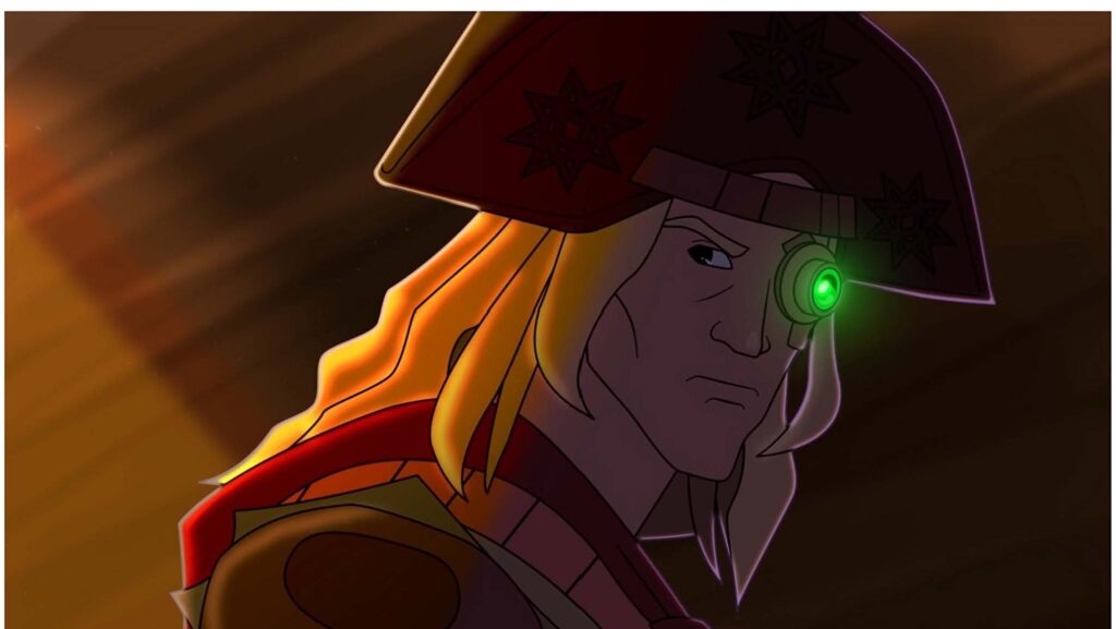 De feições duras, harmoniosas, cabelos de fogo, estatura média pra alta e corpo de atleta, Lua carrega um braço e um olho mecânicos que ampliam sua força e precisão